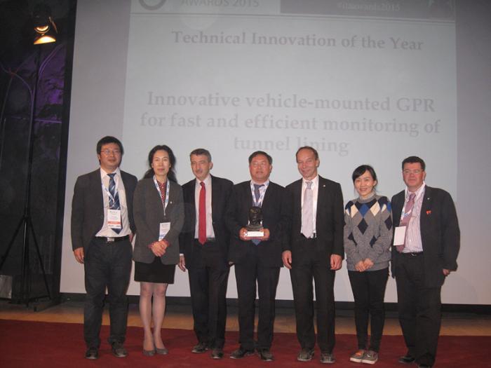 11月19日,國際隧道與地下空間協會(International Tunnelling and Underground Space Association,簡稱ITA)在瑞士Hagerbach試驗長廊內召開頒獎大會。西南交通大學地球科學與環境工程學院昝月穩教授、李志林教授等申報的“高效快速檢測隧道襯砌結構狀態車載探地雷達新技術”榮獲ITA2015年“年度技術創新獎”(Technical Innovation of the Year)。這是ITA的首個年度技術創新獎,也是中國今年獲得的唯一獎項。